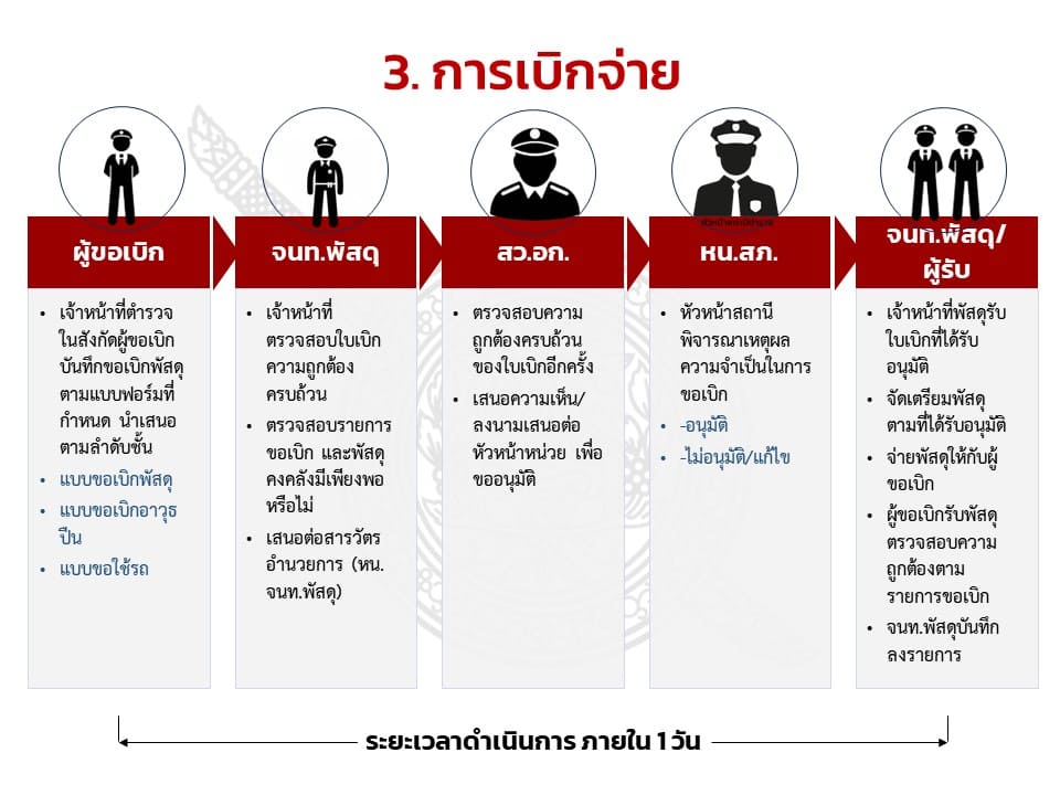 3. ตรวจสอบและตรวจนับอาวุธยุทธภัณฑ์ของสถานีตำรวจเพือ่ให้มีความพร้อมต่อการใช่งานในภารกิจประจำวัน